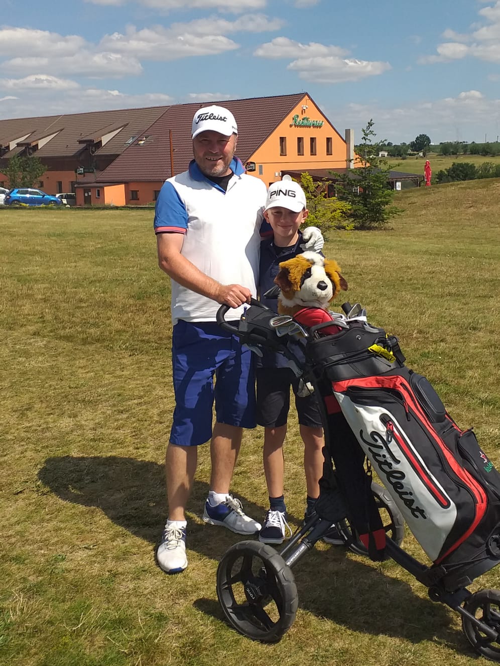 Trenér A-týmu měl o volnu spoustu času na oblíbený golf. Na snímku je se svým synem Simonem.